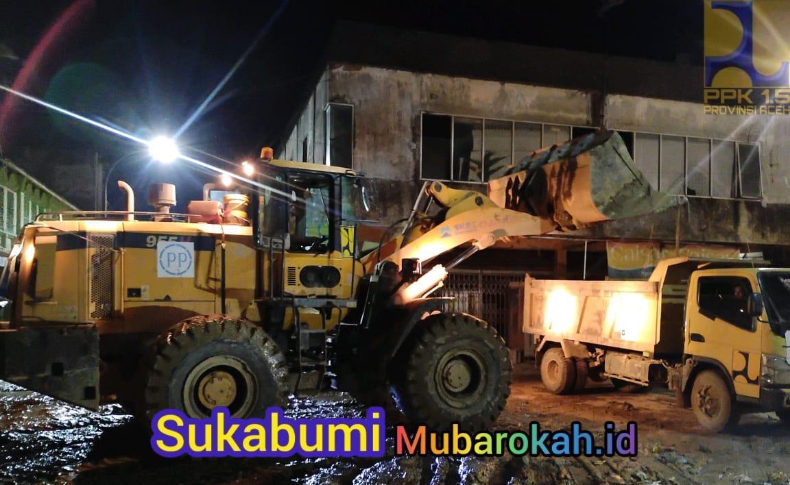 Sukabumimubarokah.com, Aceh Tamiang — Upaya pembersihan pascabanjir bandang dan longsor di Kabupaten Aceh Tamiang terus dikebut. Hingga larut malam, tim penanggulangan bencana dari Kemeterian Pekerjaan Umum (PU) dan relawan mengerahkan alat berat untuk membersihkan material sisa banjir yang menutup jalan nasional.