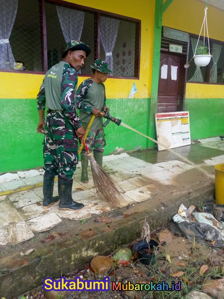 Para personel yang sebagian besar tergabung dalam Satuan Tugas Penanggulangan Bencana membersihkan baik bagian dalam maupun luar gedung sekolah. Lumpur-lumpur yang masih tersisa dan sudah mengeras disiram dengan air. Tumpukan material sampah yang terbawa banjir dan longsor pun dibersihkan.