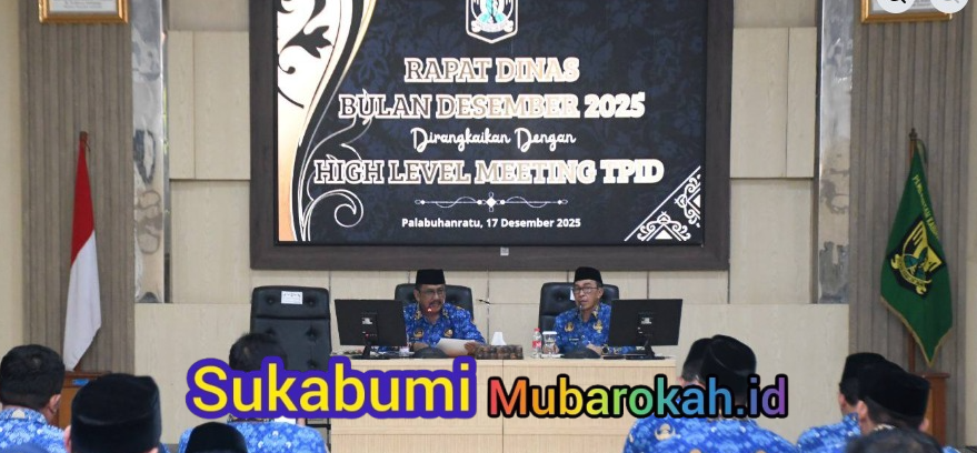 Sukabumimubarokah.id, Bupati Sukabumi H Asep Japar memimpin Rapat Dinas Bulan Desember 2025 yang digelar di Aula Sekretariat Daerah Kabupaten Sukabumi, Rabu (17/12/2025). Rapat dinas dipandu oleh Sekretaris Daerah Kabupaten Sukabumi, H Ade Suryaman, dan diikuti oleh kepala perangkat daerah, para asisten daerah, staf ahli, para kepala bagian, serta para camat se-Kabupaten Sukabumi.