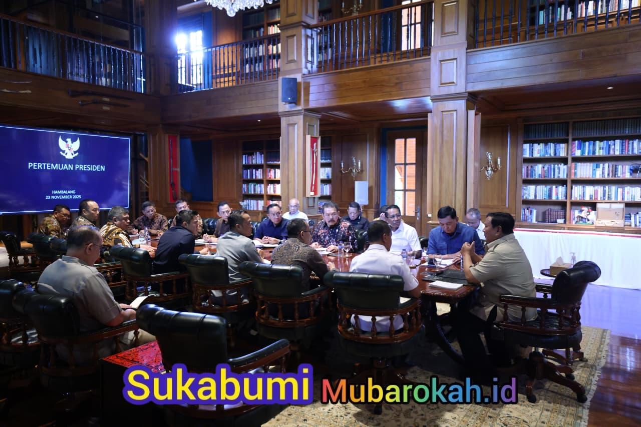 sukabumimubarokah.id,- Bogor — Presiden Republik Indonesia Prabowo Subianto melakukan rapat terbatas pertemuan bersama sejumlah anggota Kabinet Merah Putih membahas sejumlah isu strategis terkait pembahasan penertiban dan penegakan hukum di sektor hutan hingga tambang di Padepokan Garuda Yaksa, Hambalang, Bogor, Jawa Barat, Minggu (23/11).