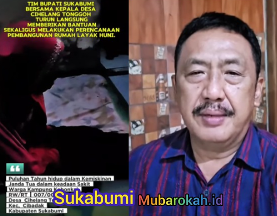“Bismillahirrahmanirrahim. Assalamualaikum warahmatullahi wabarakatuh. Saya atas nama Pemerintah Kabupaten Sukabumi merasa prihatin melihat kondisi rumah yang ada di Desa Cihelang Tonggoh, Kecamatan Cibadak, yang sementara ini kurang layak untuk dihuni. Dan insyaallah dalam waktu dekat kami akan usulkan rumah tersebut untuk dibangun agar layak untuk dihuni. Terima kasih. Wassalamualaikum warahmatullahi.”