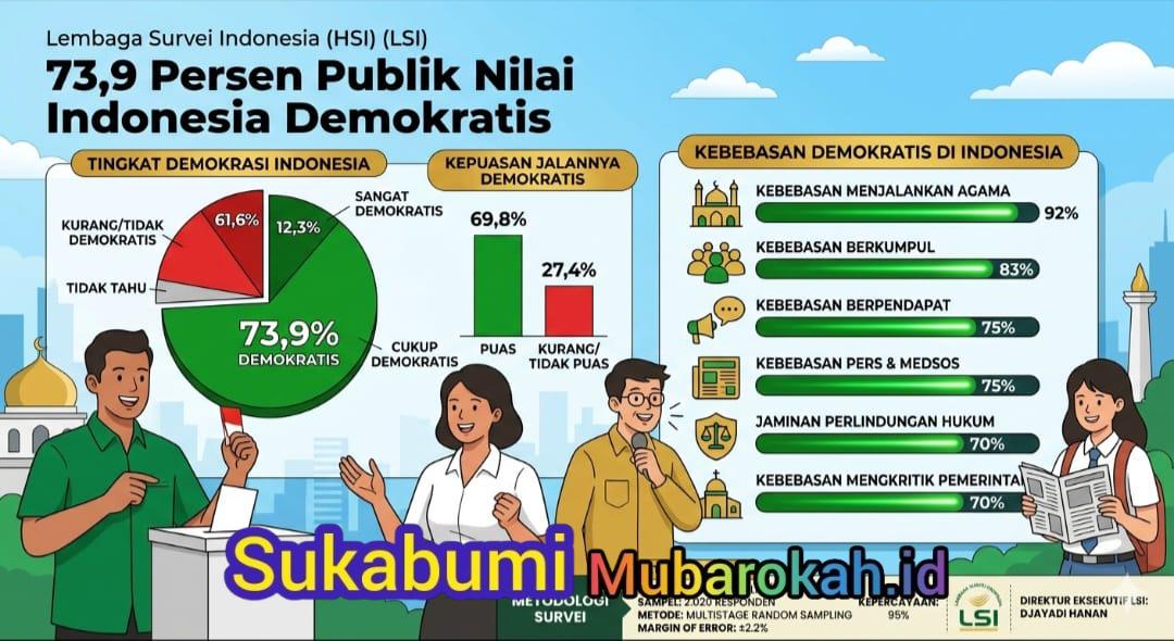 Jakarta – Mayoritas masyarakat Indonesia menilai sistem politik di Tanah Air masih berada dalam koridor demokrasi. Hasil survei terbaru Lembaga Survei Indonesia (LSI) menunjukkan sebanyak 73,9 persen responden menyebut Indonesia sebagai negara demokratis.
